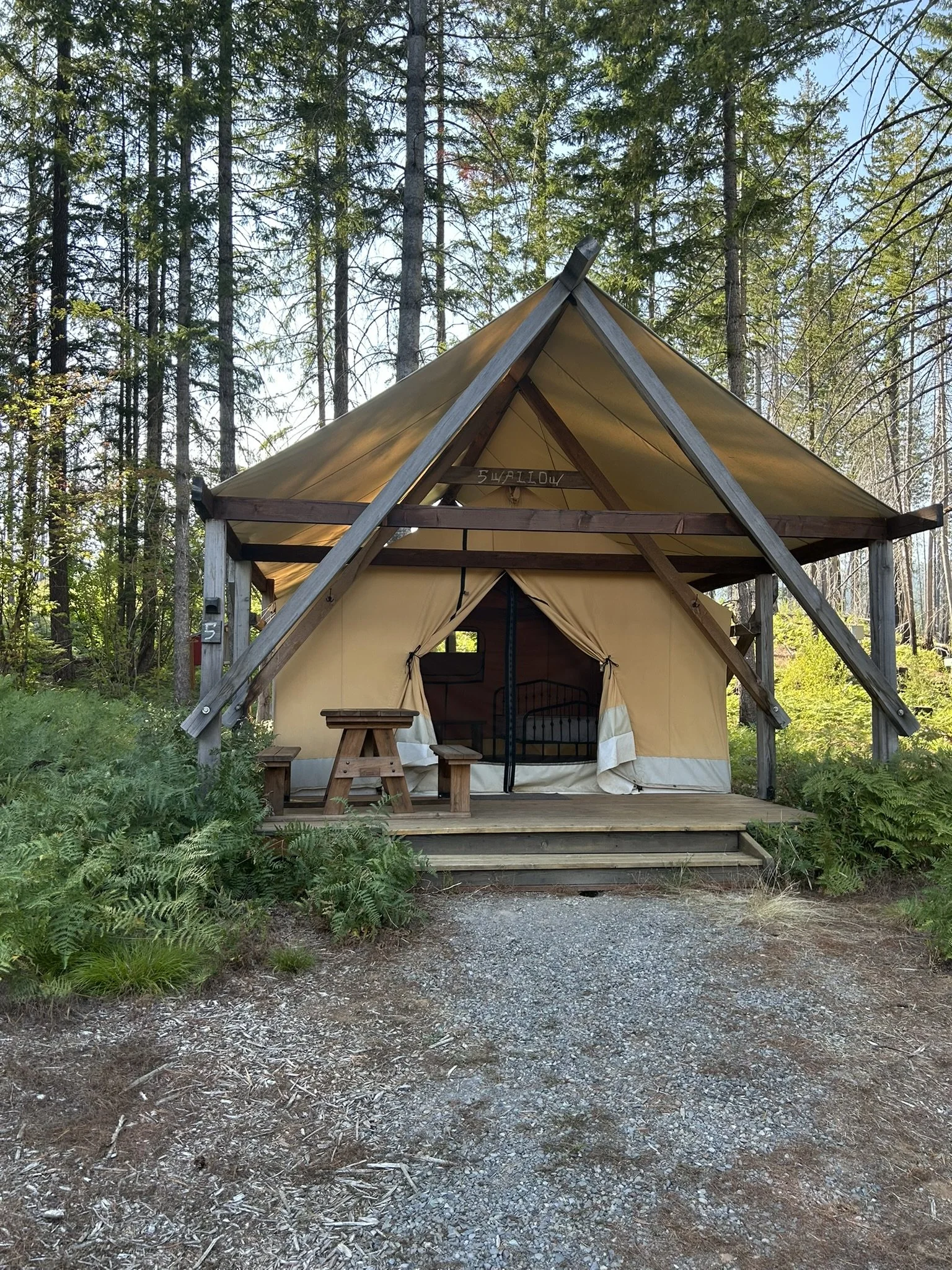The accommodations were simple but thoughtful—raised platform canvas tents with actual beds, desks, and plenty of space. They also offered heated yurts, several small lodge rooms, and camping. Open-air showers beside the river jolted you awake in the best way. Not “resort” luxury, but the kind of luxury our bodies crave: comfort without excess, wildness close enough to remind us of who we are.